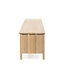 TV meubel Jake in naturel is een lichte en moderne toevoeging aan je interieur. Gemaakt van eikenhout en eiken fineer en afgewerkt in een frisse naturel tint met zichtbare nerfstructuur. De verticale lijnen geven het meubel een strak en rustig ritme.